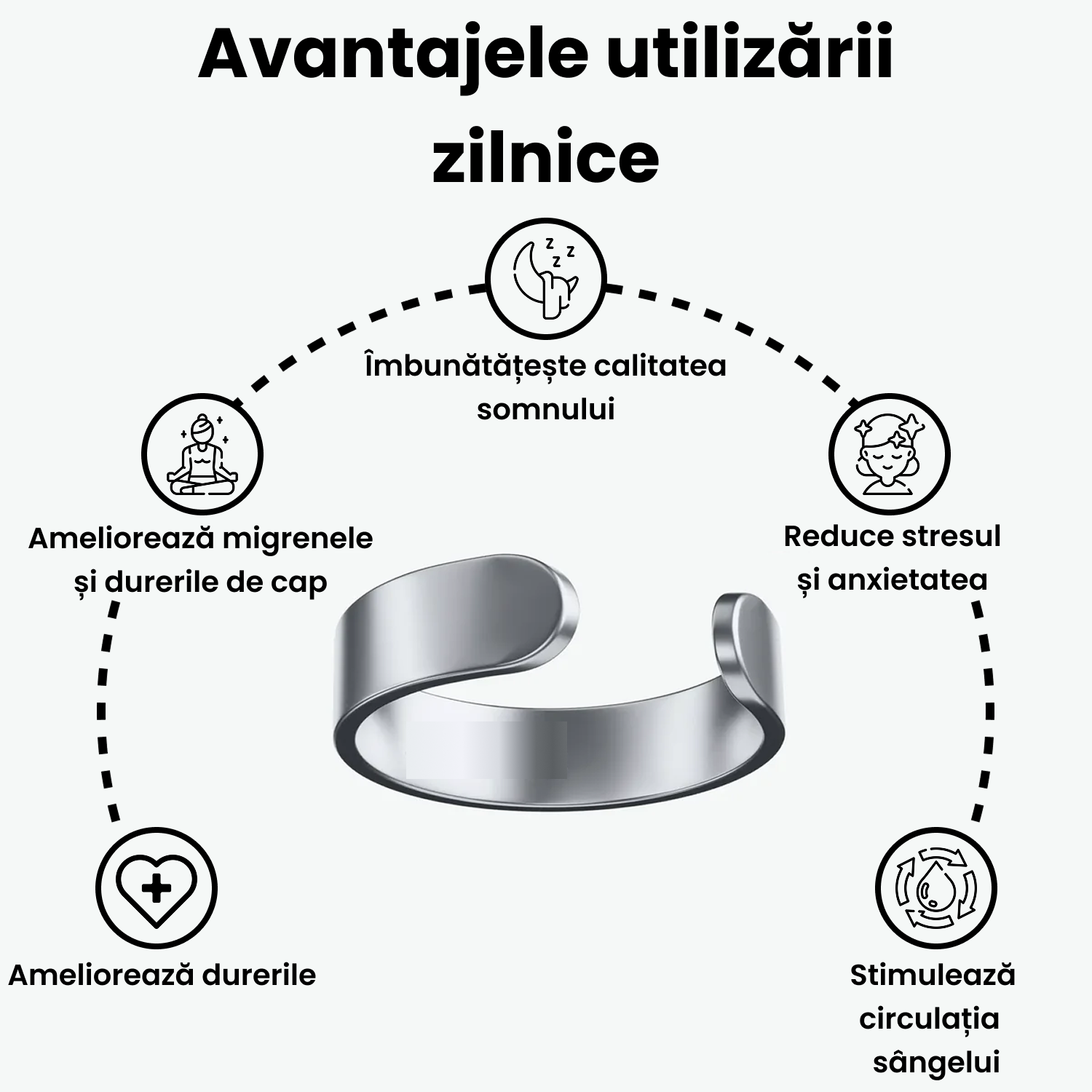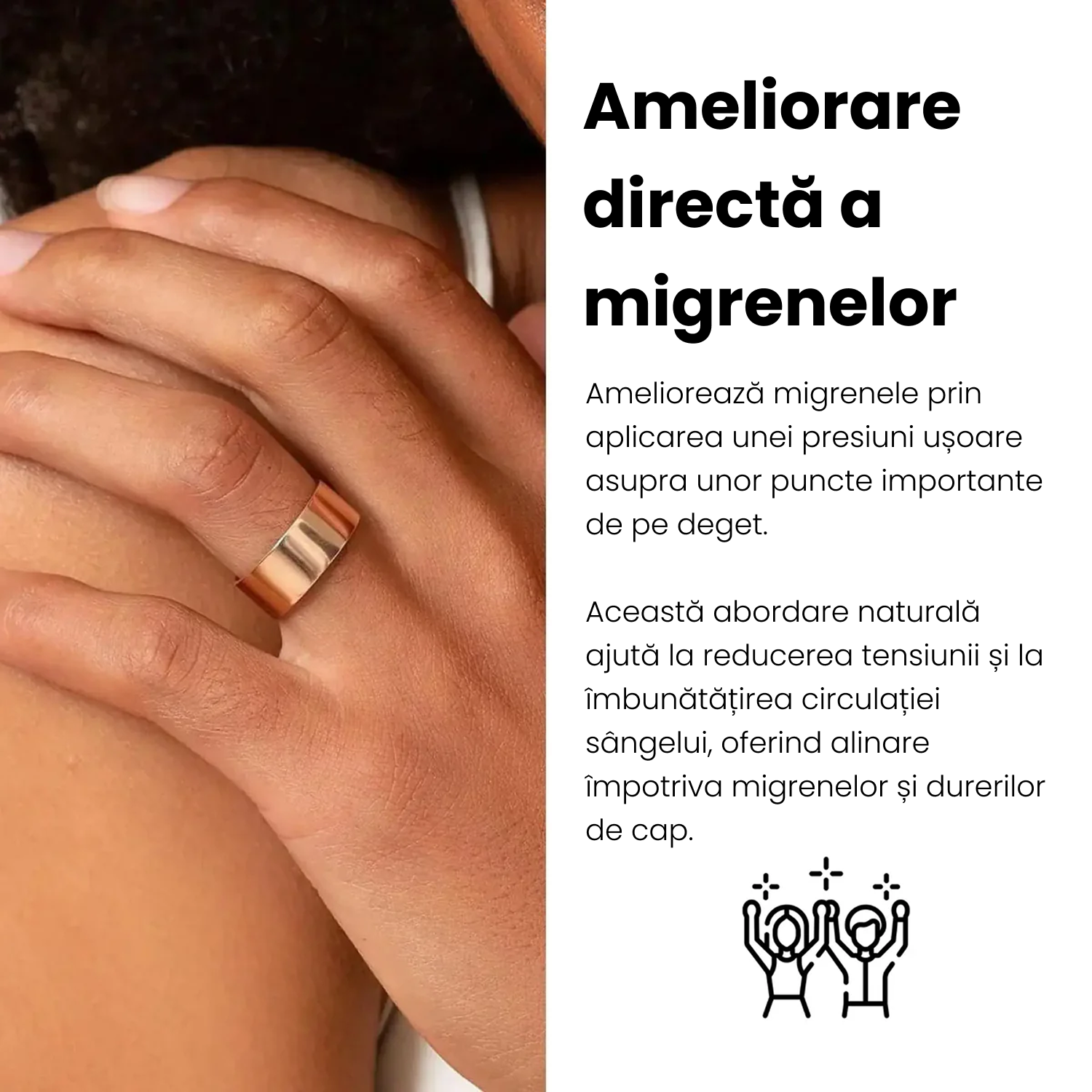 Inelul nostru inovativ este conceput pentru a sprijini ameliorarea migrenelor și durerilor de cap.